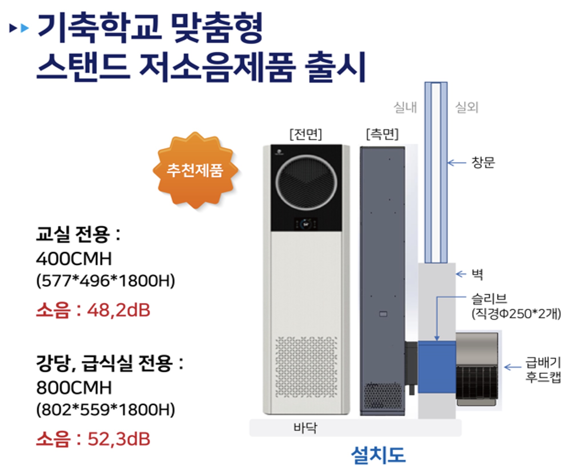 기존학교 공기순환기의무설치로 교실/강당 저소음 제품출시