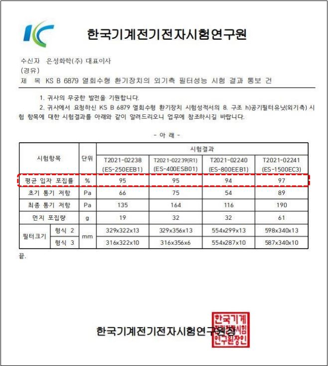 은성 우수제품의 공기순환기란