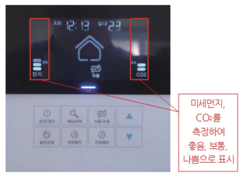 - 자동운전(제어연동) : 자동측정으로 실내 공기질 관리 (눈으로 보는 관리)