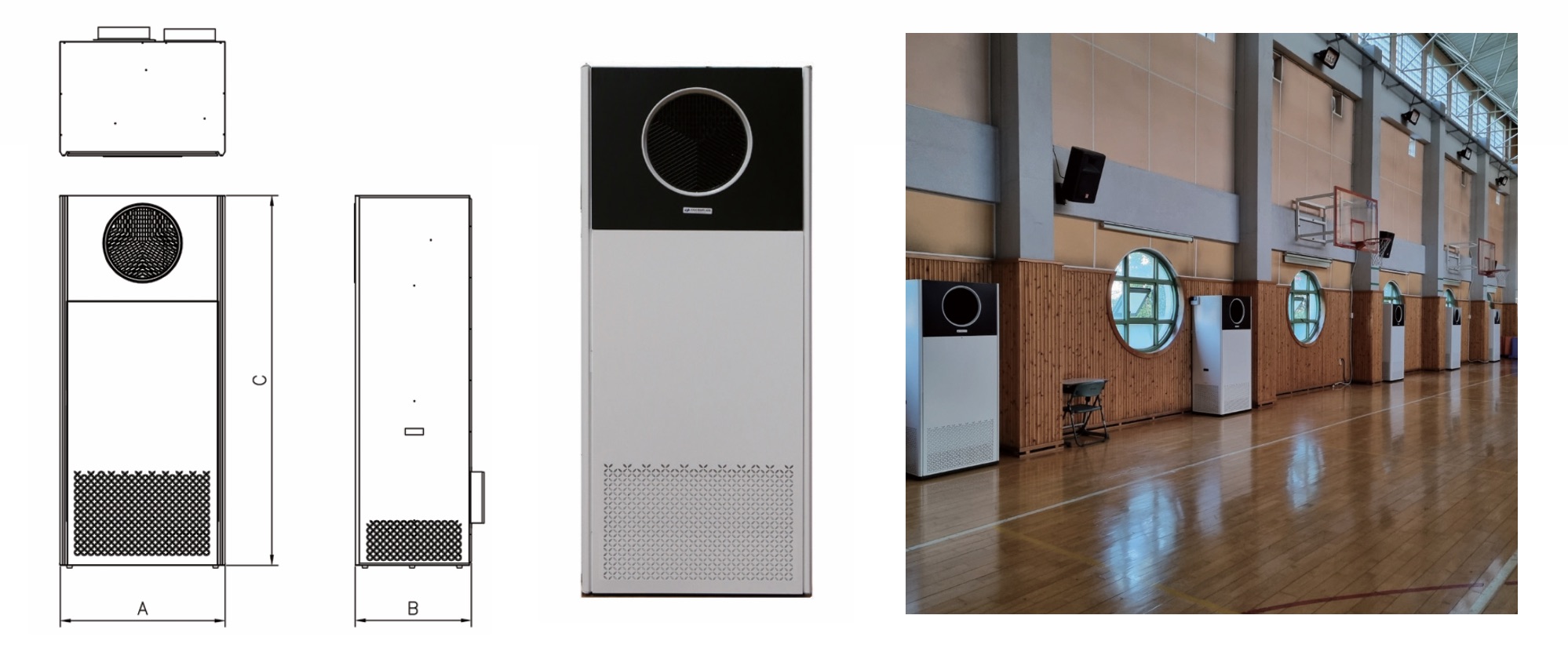 무덕트(스탠드형, 바닥상치형) 천장부착형 환기유니트 설치도